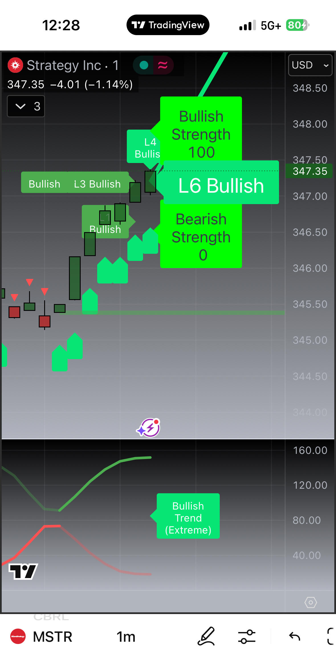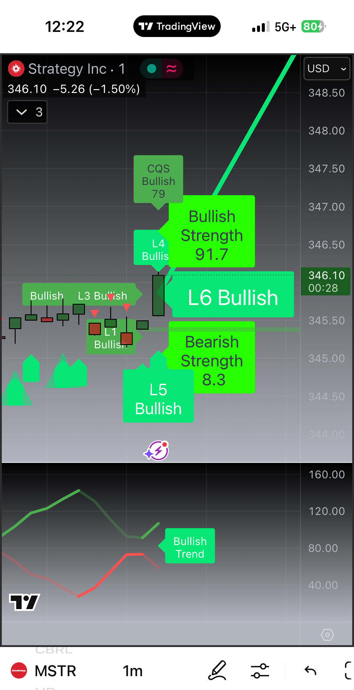 Here’s a 6-minute scalp illustration on MicroStrategy (MSTR) using 1-min charts. The chart highlights a small sample move (+0.36%) between entry and exit.This is a historical chart illustration, not a guarantee of results. Any references to % moves are examples of math applied to past price action and do not represent future outcomes.