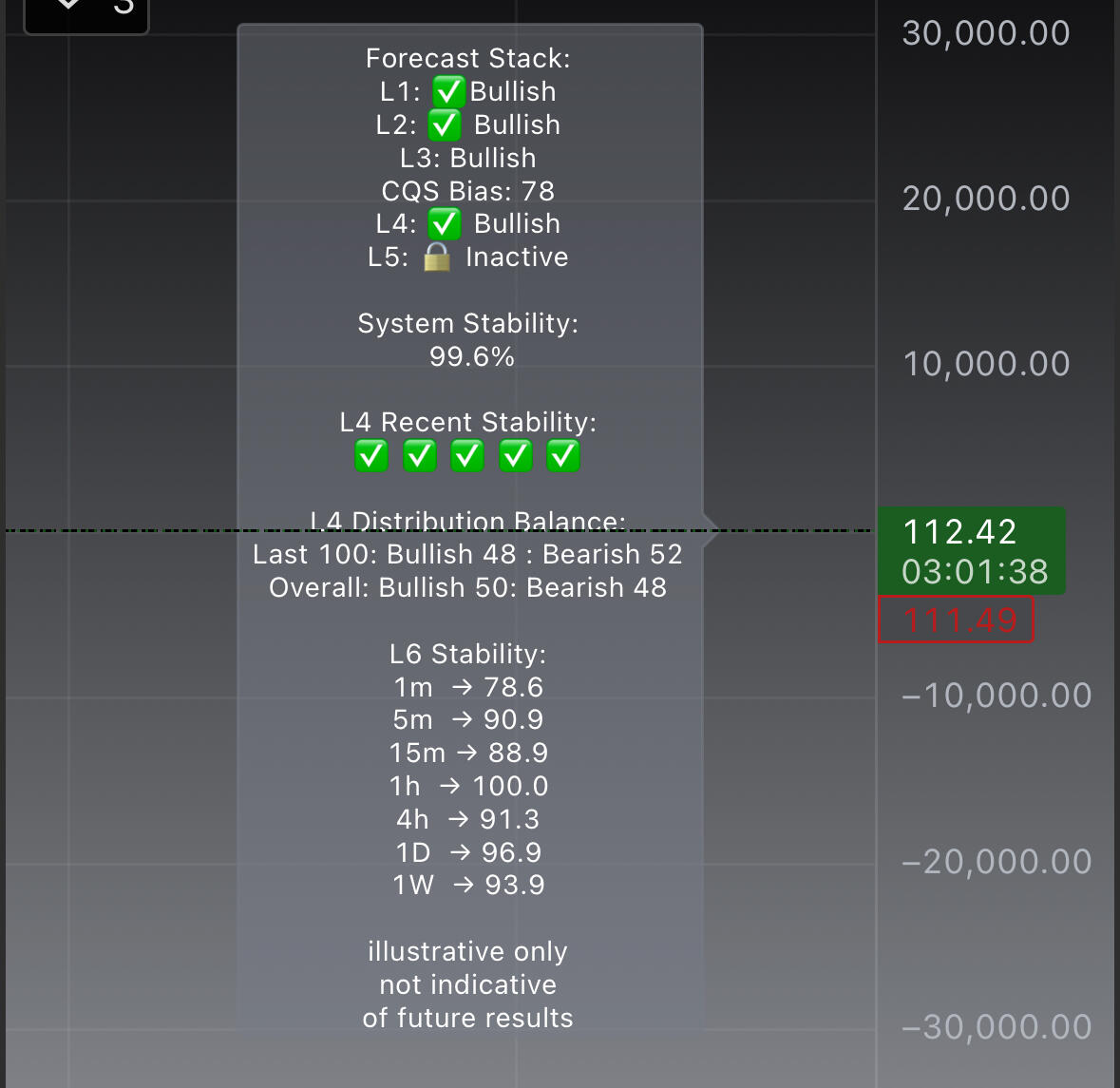 The fact that Predator can adjust its forecast during an open candle is a feature, not a flaw. It means the system updates continuously as new price data comes in, reflecting changing market conditions until the candle closes.This framework is for internal measurement and illustrative purposes only. It does not predict or guarantee future accuracy.